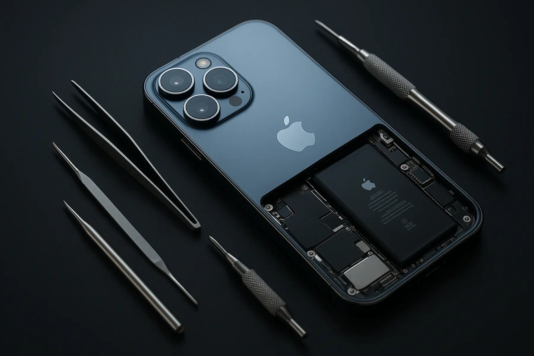 Простые работы (замена стекла, батареи) занимают от 30 до 90 минут. Более сложная пайка, восстановление после воды или ремонт Face ID могут потребовать больше времени — мастер сориентирует по телефону.